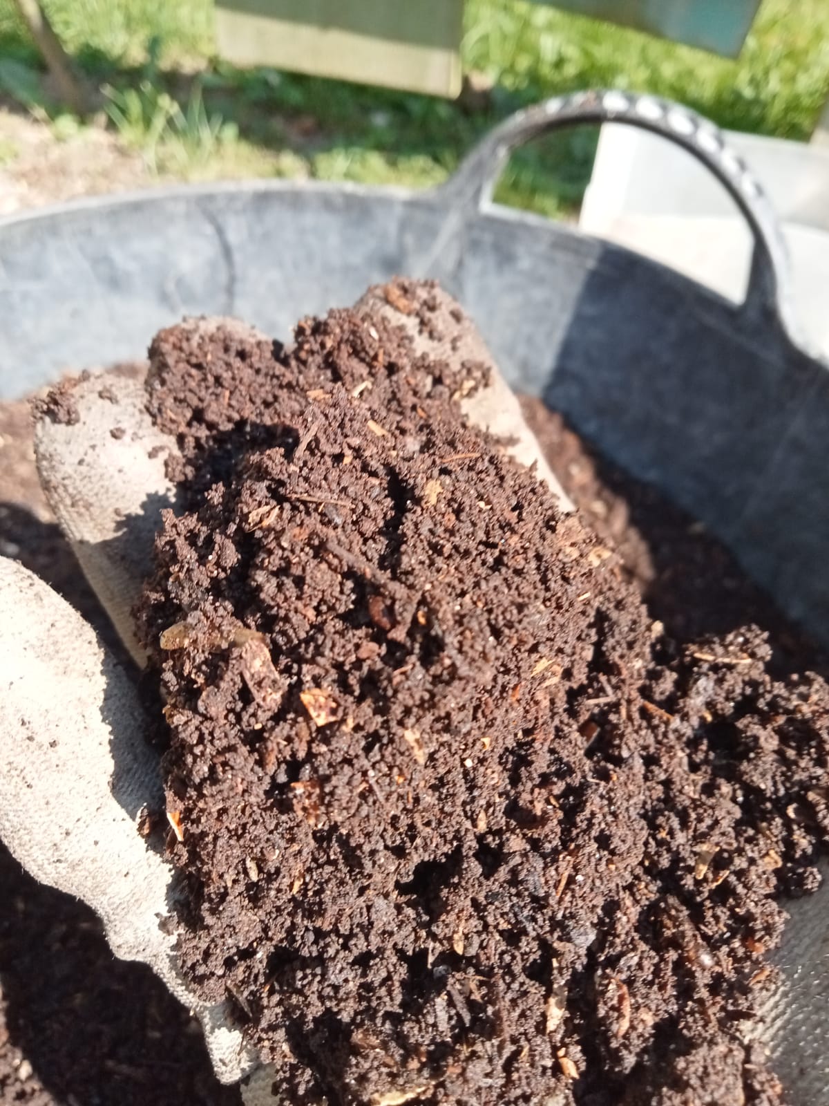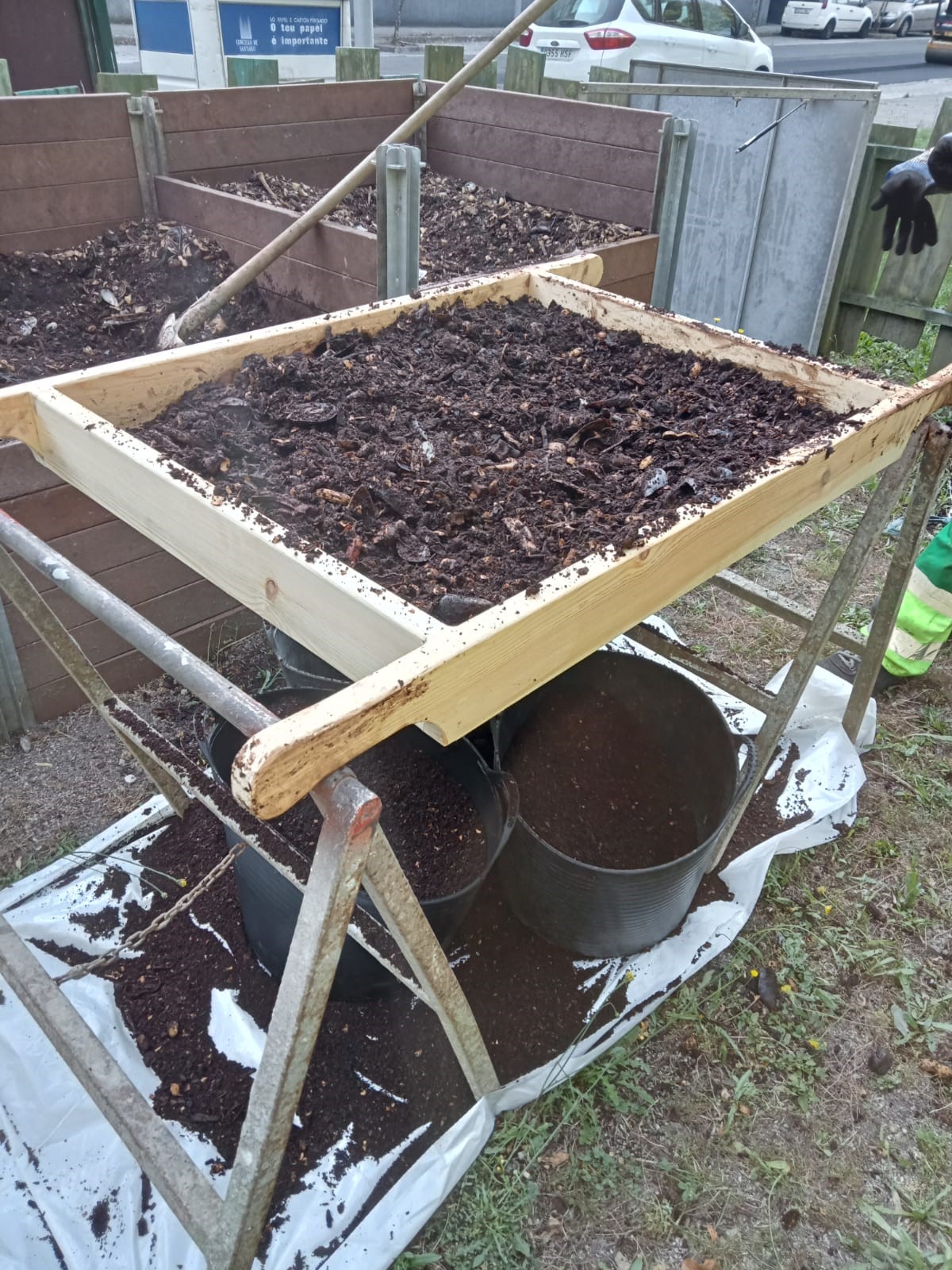 Froito do traballo das familias que aportan materia orgánica ás tres illas que temos na actualidade, sacamos un compost de alta calidade que estamos a aplicar nos xardíns e nas hortas municipais.